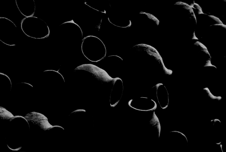 Morning light enhanced the beauty of earthen pots kept at a road side.