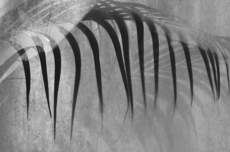 This abstract monochrome photograph captures the elongated shadows of palm fronds, layered delicately against a softly textured surface. The overlapping forms create a rhythmic, almost musical pattern, evoking the sensation of movement through stillness. The soft light and subtle gradients transform the image from a simple natural shadow into a dreamlike visual poem—one that speaks of impermanence, repetition, and the quiet elegance of nature's geometry. This piece blurs the line between photography and fine art, inviting introspection and emotional connection.